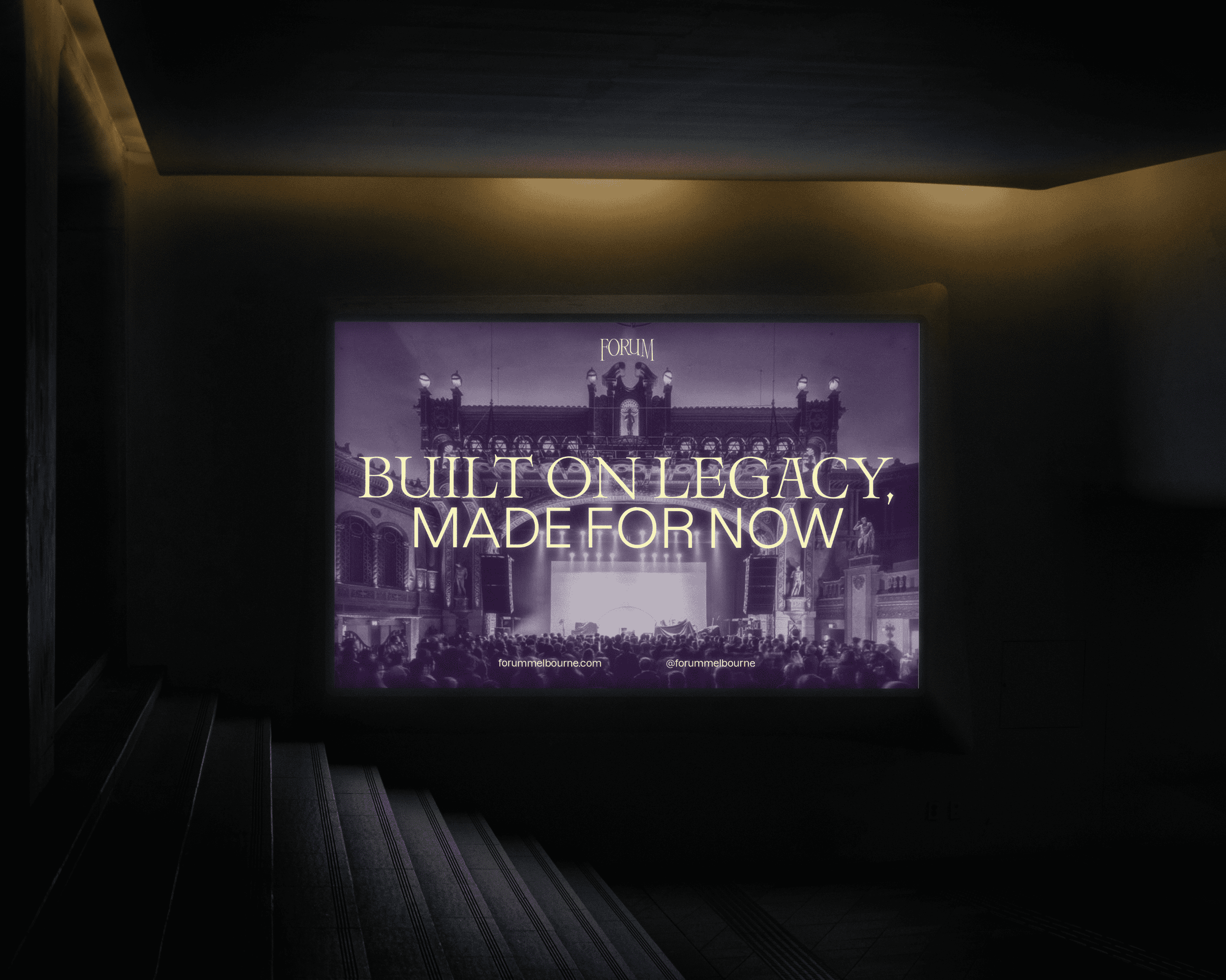 Forum Melbourne is a historic live music venue known for its character and atmosphere. This rebrand draws from its past while shaping a bold visual identity for its future, honouring what the Forum has been, and imagining what it can become.